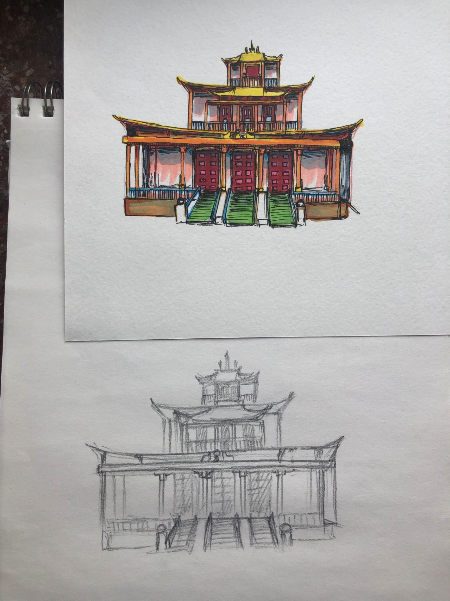 Even better, I haven’t been throwing all of my extra time into triple integrals and Lagrangian computer simulations for my physics classes as I would during a regular term, so I’ve had extra time on my hands for more artistic pursuits. I’ll leave the poetry to Nick, Amelia, Bulgakov, and Dostoyevsky, but there are many ways to be inspired! Although I suffered Nick’s gentle teasing for taking constant photos, the literally thousands of images I have from my time here yielded some relatively nice ones, allowing me to put together an album of images from all over Russia for the blog. I’ve also done some drawing in the dorm, inspired by the art and architecture around me.